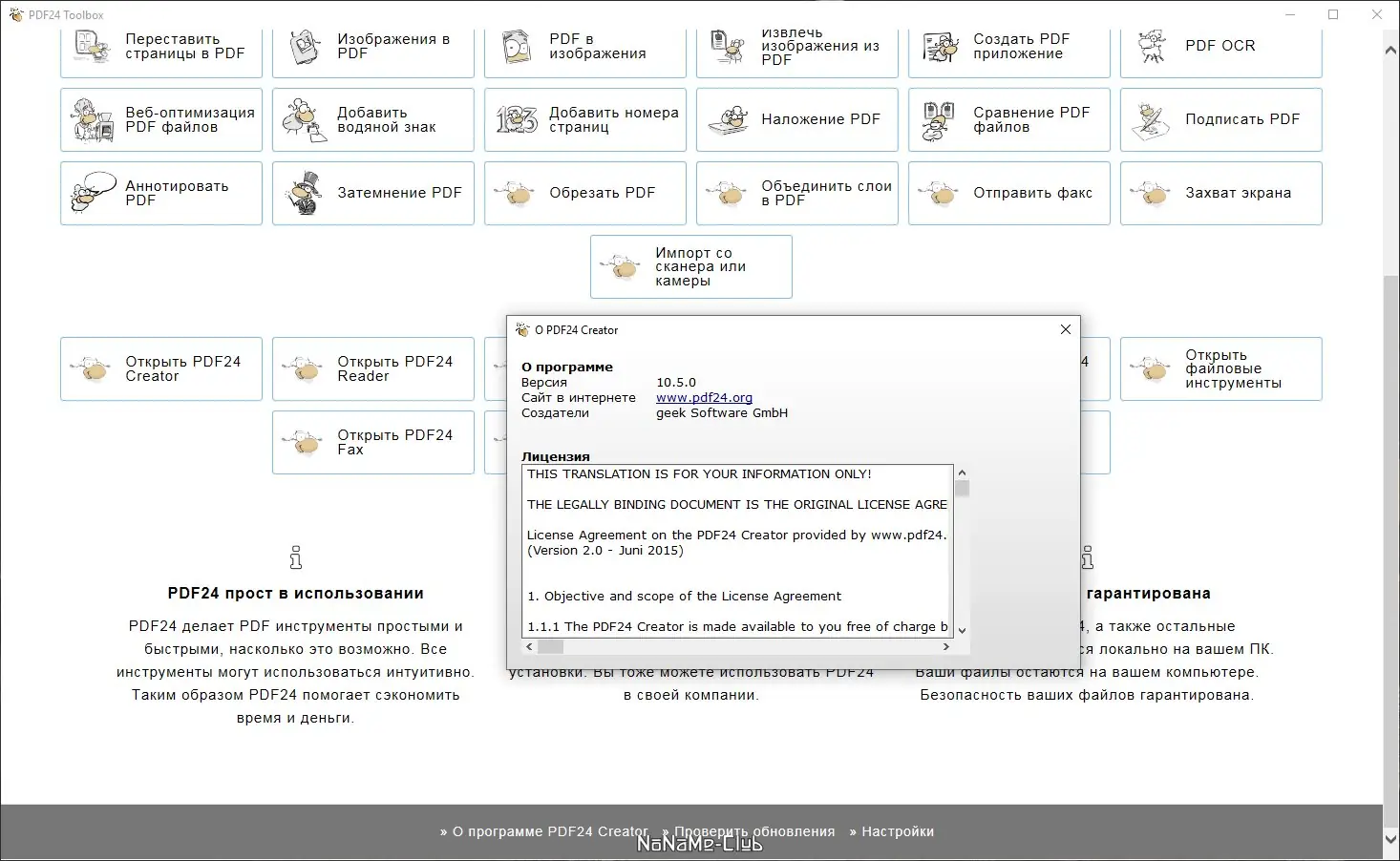 PDF24 Creator — это бесплатное программное обеспечение для создания, редактирования и управления PDF-документами. Оно позволяет легко конвертировать изображения и различные форматы файлов в PDF, объединять и разделять документы, защищать их паролем и добавлять подписи. Благодаря интуитивно понятному интерфейсу и широкому функционалу, PDF24 является универсальным инструментом для работы с PDF-файлами как для личного, так и для профессионального использования.