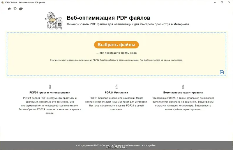 PDF24 Creator — это бесплатное программное обеспечение для создания, редактирования и управления PDF-документами. Оно подходит как для домашнего использования, так и для бизнеса, позволяя быстро и просто преобразовывать изображения и различные файлы в PDF формат, а также выполнять множество дополнительных операций с документами. Благодаря удобному интерфейсу и широкому набору функций, программа становится незаменимым инструментом для работы с PDF на русском языке.
