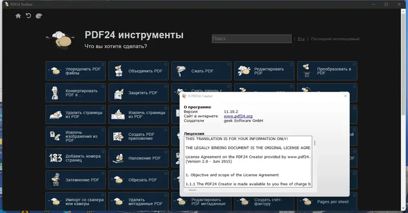 PDF24 Creator — это бесплатное мощное решение для создания, редактирования и управления PDF-документами. Эта программа отлично подходит для пользователей, которым необходимо быстро и удобно работать с PDF-файлами, конвертировать изображения и документы в формат PDF, а также защищать важные файлы паролем. Скачать бесплатно PDF24 Creator можно на официальном сайте, что делает его доступным для широкого круга пользователей, а русская версия программы обеспечивает комфортное использование на русском языке.