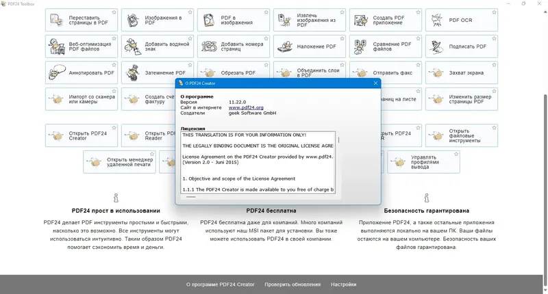 PDF24 Creator — это универсальный и бесплатный инструмент для работы с PDF, который легко скачать и установить на русском языке.