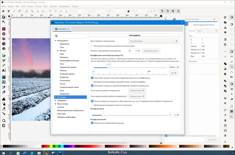 - Поддержка форматов PNG, JPG, TIFF, BMP, PS, PCX, EPS
