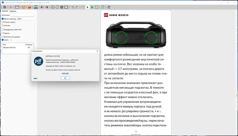pdfFactory Pro отличается широкими возможностями по созданию и защите PDF-документов, что делает его востребованным среди профессионалов и офисных пользователей. Интуитивно понятный интерфейс и простота установки позволяют быстро начать работу без дополнительных затрат времени. Однако, несмотря на богатый функционал, программа может быть сложной для новичков, требующих базовых функций без дополнительных настроек.