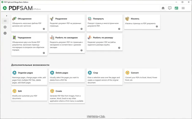 - Множество функций для работы с PDF, включая разделение, объединение и редактирование страниц.