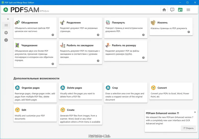 PDFsam — это мощный инструмент для обработки PDF, который можно скачать бесплатно на русском языке и использовать без ограничений.