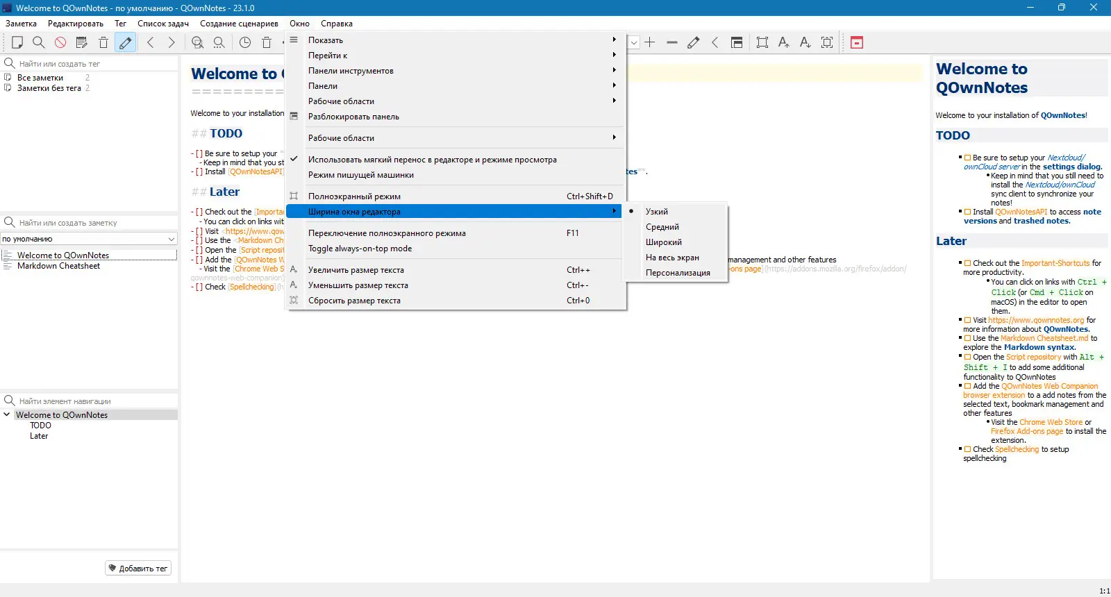 QOwnNotes — это универсальный редактор заметок, который помогает структурировать информацию с помощью Markdown, а также обеспечивает удобную организацию через поддержку тегов и иерархических каталогов. Программа отлично подходит для тех, кто ценит простоту, свободу настроек и возможность синхронизации данных между устройствами через облачные хранилища, такие как ownCloud, Nextcloud или Dropbox. Особенность программы — это возможность работы в портативном режиме, что делает ее удобной для использования на различных устройствах без необходимости установки.