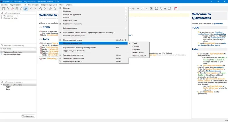 QOwnNotes — это универсальный редактор заметок, который позволяет не только создавать и редактировать записи, но и организовывать их в каталоги. Используя формат Markdown, пользователи могут легко форматировать текст, добавлять списки, заголовки и ссылки. Возможность синхронизации с облачными сервисами, такими как ownCloud, Nextcloud или Dropbox, делает программу особенно привлекательной для тех, кто работает на нескольких устройствах. Благодаря портативной версии, программа не требует установки и может запускаться прямо с флешки или другого носителя, что обеспечивает мобильность и удобство.