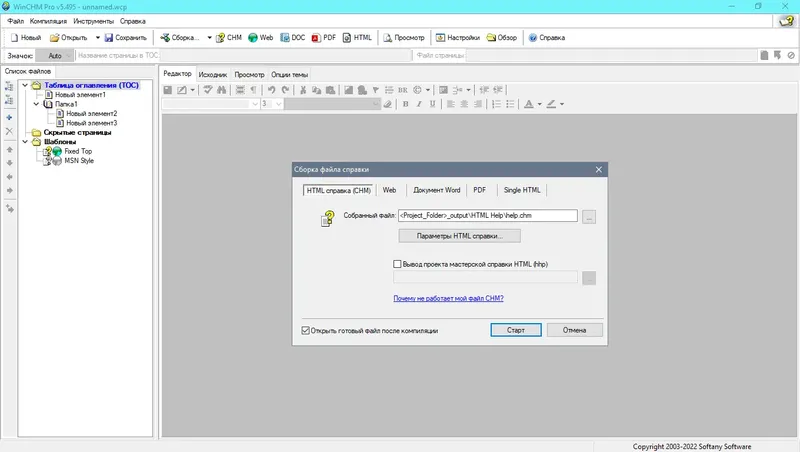 - Возможность преобразования HTML в CHM и редактирования сторонних файлов