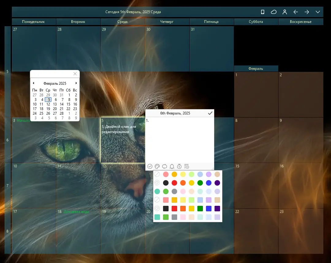 - Настройка размера календаря и возможность его фиксации на рабочем столе