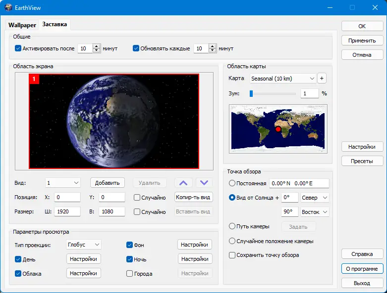 EarthView — это динамические обои и экранные заставки, которые создают впечатляющие визуальные отображения нашей планеты с реалистичными эффектами дневного и ночного освещения. Программа позволяет выбрать из множества карт и видов Земли, а также настраивать параметры отображения для достижения максимально реалистичного и красочного вида. Благодаря высокому разрешению изображений и богатому функционалу, EarthView станет отличным дополнением для украшения рабочего стола и повышения его информативности.