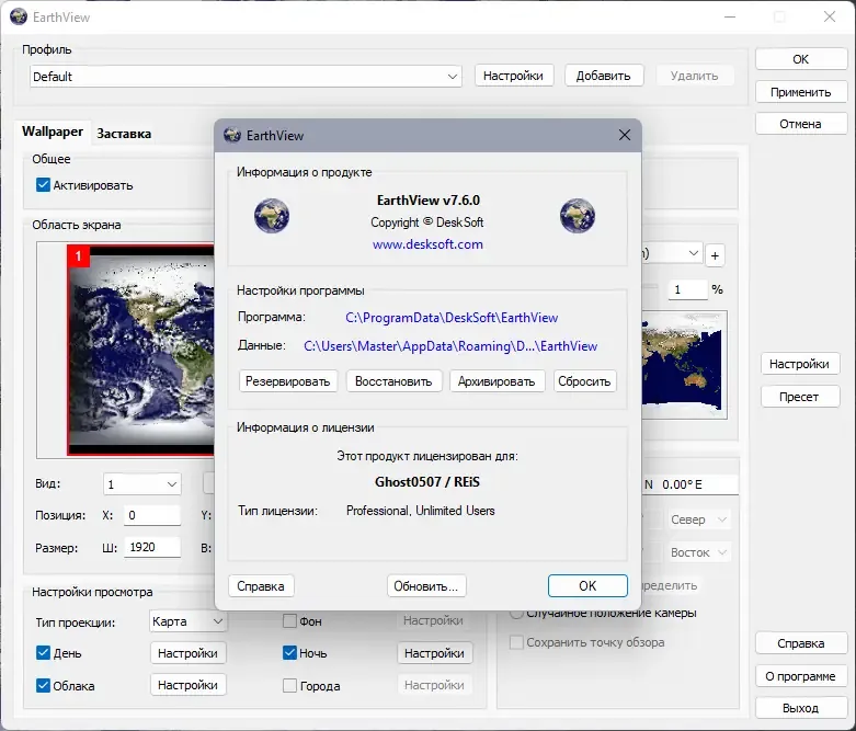 EarthView — это современная программа для оформления рабочего стола и хранения экрана, которая отображает реалистичные виды земли с различными эффектами. Она создает высококачественные изображения с высоким разрешением, подходящими даже для 4K-экранов и выше. В основе программы лежит множество карт и проекций глобуса, позволяющих наблюдать планету в различных режимах, включая сезонные изменения и погодные условия. Возможность настройки параметров отображения делает EarthView универсальным инструментом для оформления и информирования о погоде.