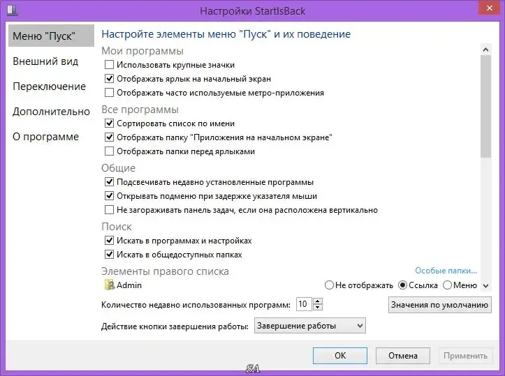 Для использования StartIsBack Plus необходимо скачать установочный файл с официальной страницы и запустить его. После установки программа автоматически интегрируется в систему, и при следующем запуске Windows вы увидите классическую кнопку Пуск. В настройках можно выбрать внешний вид, включить или отключить поиск по меню, а также настроить параметры отображения недавно использованных приложений и элементов меню. Весь интерфейс полностью локализован и адаптирован под русский язык, что обеспечивает комфортное взаимодействие.