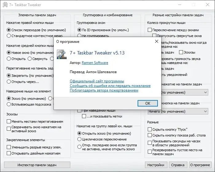 Описание 7+ Taskbar Tweaker