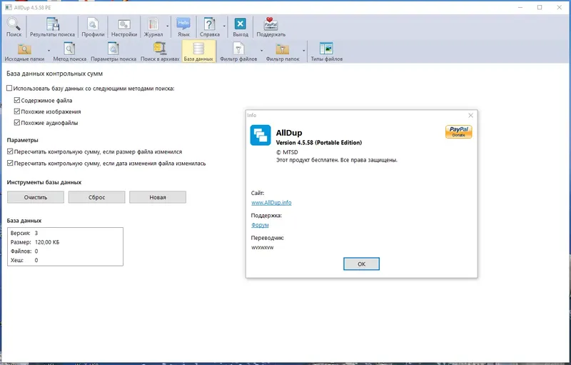 AllDup — это бесплатная программа для поиска и удаления дубликатов файлов на компьютере. Она помогает быстро находить одинаковые файлы различных типов — текстовые документы, изображения, музыку, видео и другие. Благодаря мощному алгоритму поиска, программа за считанные секунды обрабатывает большие объемы данных, позволяя освободить место на диске и навести порядок в файловой системе.