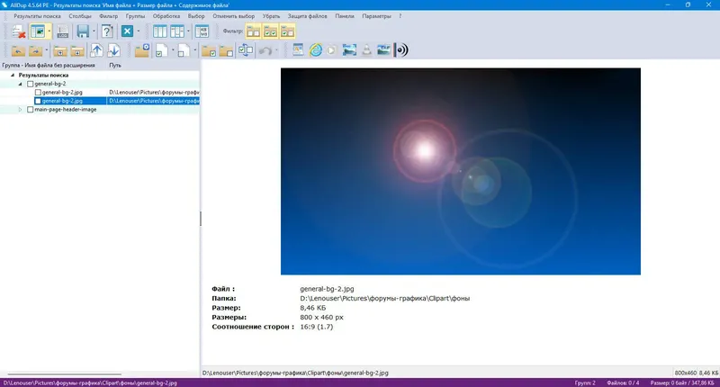 AllDup — это бесплатное программное обеспечение для поиска и удаления дубликатов файлов на компьютере. Оно эффективно помогает освободить место на диске, устраняя ненужные копии изображений, музыки, видео и других типов файлов. Благодаря быстрому алгоритму поиска программа способна за считанные секунды обработать большие объемы данных, предоставляя пользователю удобные инструменты для управления файлами.