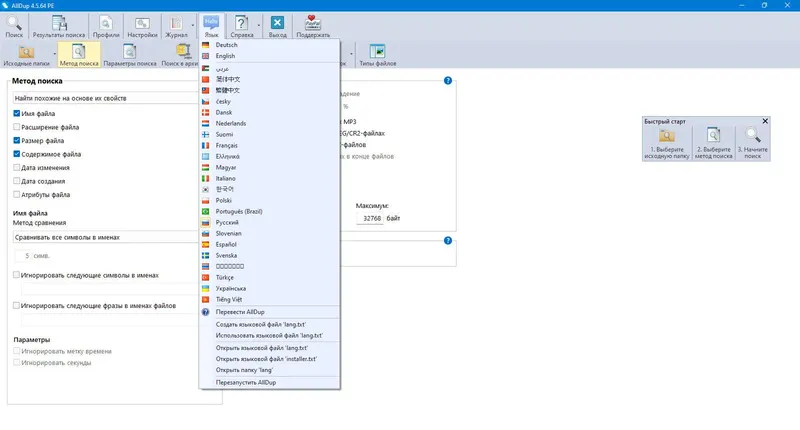 AllDup — это мощный инструмент для работы с жёстким диском, предназначенный для поиска дубликатов по различным критериям. Он позволяет определить одинаковые файлы по имени, расширению, содержимому, дате создания или последнего изменения. Программа отличается высокой скоростью работы и широкими возможностями фильтрации, что делает её незаменимой для пользователей, желающих навести порядок на своих дисках и избавиться от мусорных копий файлов. Скачать программу можно на официальном сайте, а интерфейс полностью русскоязычный, что облегчает использование даже начинающим пользователям.