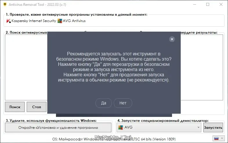 Antivirus Removal Tool — это портативное решение для быстрой и эффективной деинсталляции антивирусных программ. В сборник входят официальные утилиты для удаления более чем 28 популярных антивирусных продуктов, таких как Kaspersky, Avast, AVG и другие. Благодаря удобной графической оболочке пользователь может автоматически определить установленное антивирусное программное обеспечение и инициировать его удаление или выполнить полную очистку системы от остатков. Инструмент предназначен для системных администраторов и обычных пользователей, желающих безопасно и быстро избавиться от ненужных антивирусных решений без необходимости искать и запускать отдельные утилиты вручную.