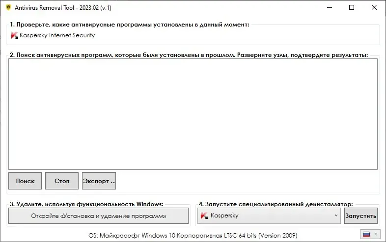 Как пользоваться Antivirus Removal Tool