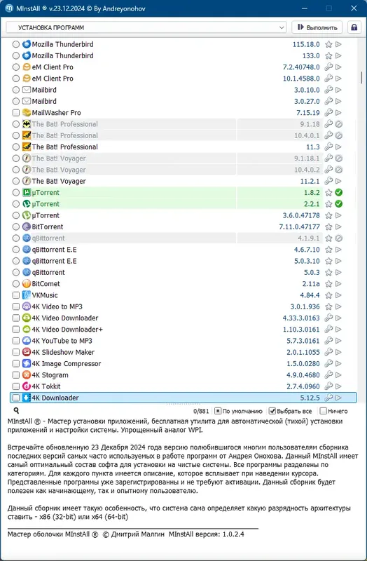 - Автоматическое обнаружение установленных программ.
