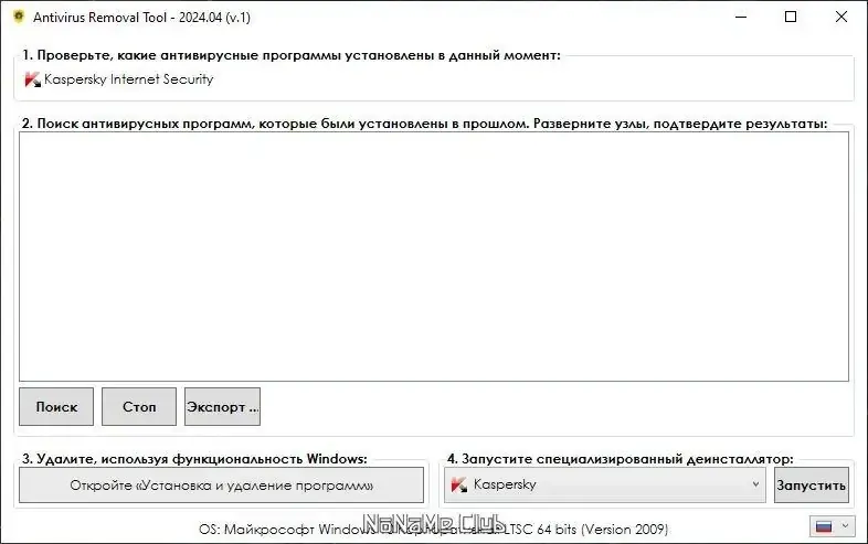 - Автоматическое определение установленного антивируса и быстрое удаление.
