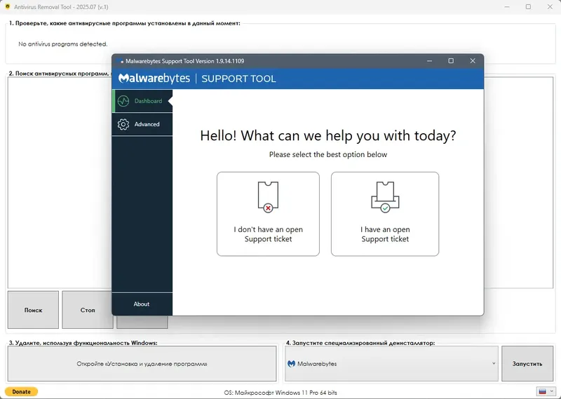 - Автоматическое определение установленного антивируса для быстрого запуска нужной утилиты.