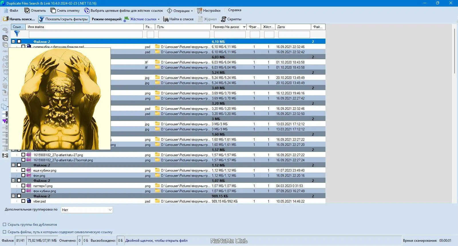 - Возможность замещения дубликатов файлами ссылок для экономии пространства.