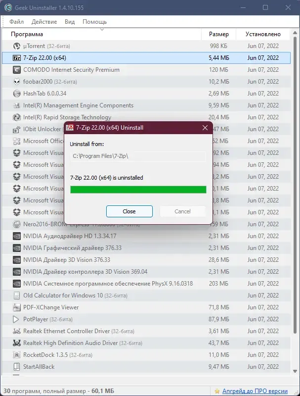 Geek Uninstaller — это универсальный инструмент для удаления программ, который отличается простотой использования и высокой эффективностью. Он позволяет произвести удаление как стандартных приложений, так и «магазинных» программ из Windows Store, а также осуществляет глубокое сканирование системы для очистки всех остатков. Эта программа идеально подходит для тех, кто ищет бесплатное решение на русском языке, чтобы скачать и установить его без лишних затрат. Она совместима с различными версиями Windows и работает в 32- и 64-битных системах, обеспечивая быструю и надежную деинсталляцию.