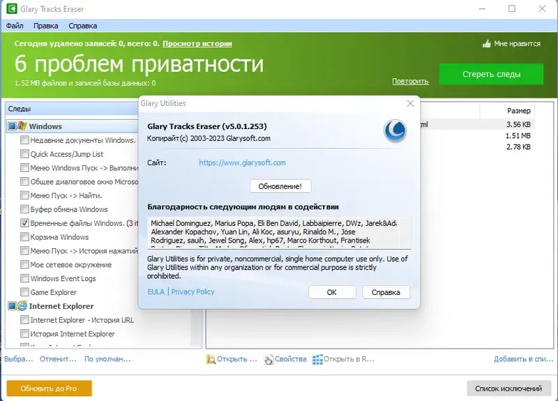 Glary Tracks Eraser — это мощный инструмент для защиты конфиденциальности и обеспечения безопасности данных на компьютере. Он позволяет удалять следы использования системы и интернет-активности, что помогает сохранить личную информацию в тайне и повысить уровень приватности. Программа подходит для пользователей, желающих управлять своими цифровыми следами и минимизировать риск утечки данных.