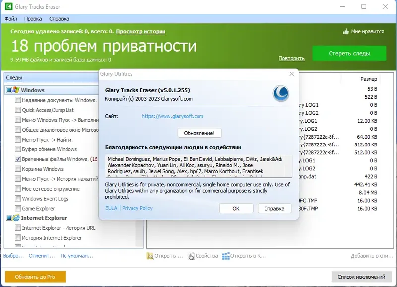 Glary Tracks Eraser — это универсальное решение для удаления цифровых следов, оставленных в процессе работы на компьютере. С его помощью можно очистить историю просмотров в браузерах, кеш, куки, пароли, а также следы использования различных программ и системных утилит. Это особенно важно для тех, кто ценит свою приватность и хочет защитить личные данные от посторонних глаз.