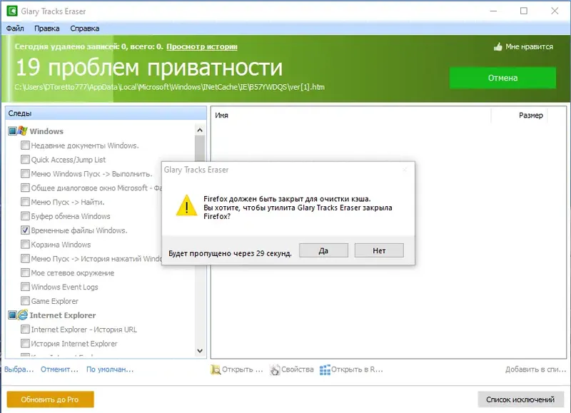 Как пользоваться Glary Tracks Eraser