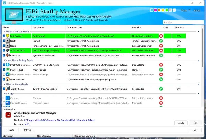 HiBit Startup Manager — это удобное решение для управления автозагрузкой, которое значительно повышает производительность и безопасность системы. Благодаря простому интерфейсу и богатому функционалу программа подходит как для новичков, так и для опытных пользователей. Она позволяет легко контролировать запуск служб и приложений, а также управлять системными задачами.