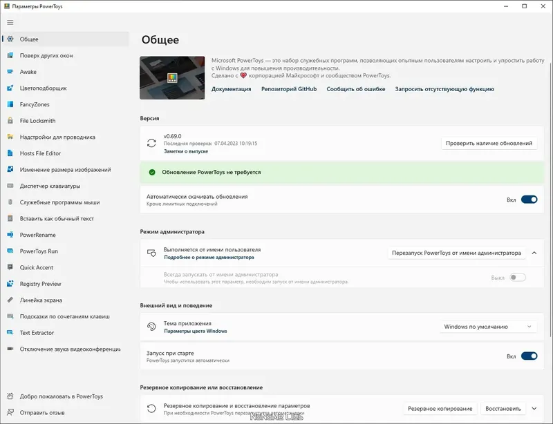 - Богатый функционал включает такие популярные функции, как fancyzones и keyboard manager.