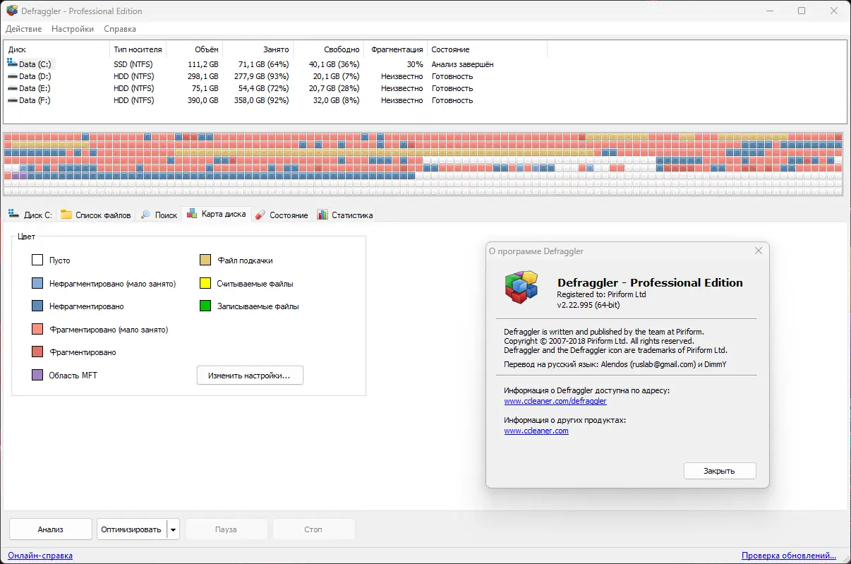 Piriform Utilities — комплексное решение для работы с жестким диском и системной оптимизации, объединяющее три мощных инструмента: Defraggler, Recuva и Speccy. Эти утилиты позволяют повысить производительность ПК, восстановить удаленные файлы и получить полную информацию о аппаратных компонентах системы. Программа идеально подходит для пользователей, стремящихся к эффективной оптимизации и надежной поддержке данных.