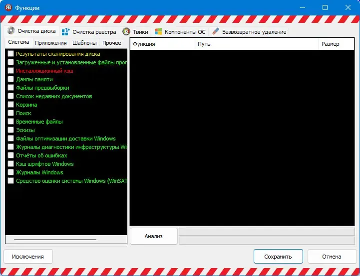 - Уникальная возможность удаления системных компонентов и настройки скрытых параметров