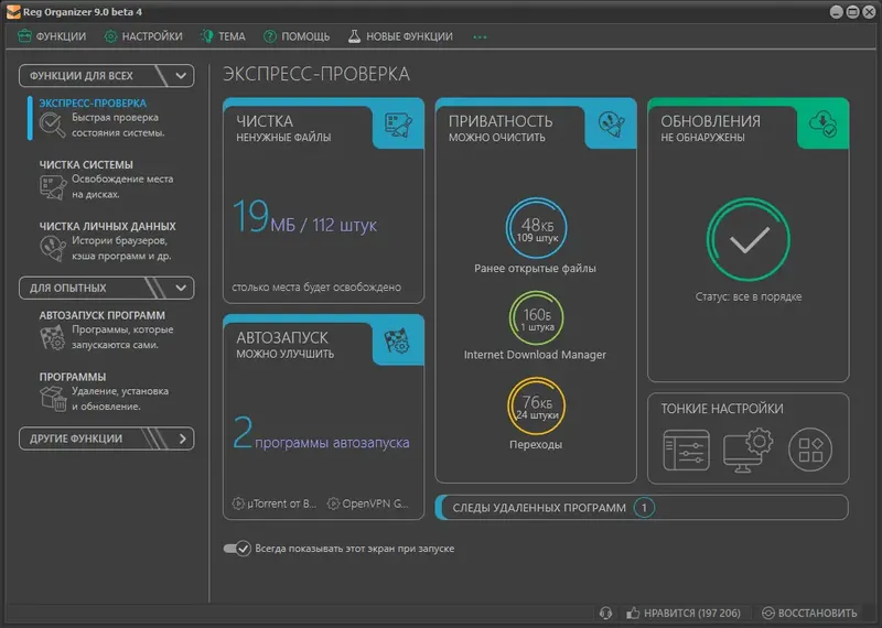 - Менеджер автозагрузки для контроля запущенных программ и ускорения старта ОС.