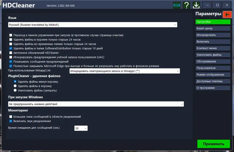 - Инструменты для настройки автозагрузки и автоматической очистки