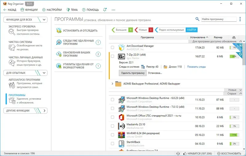 - Полное удаление программ с устранением остатков и «хвостов»