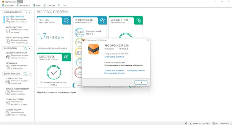Reg Organizer — это многофункциональный инструмент для работы с системным реестром Windows, позволяющий проводить его чистку, дефрагментацию и сжатие. Программа обладает расширенным редактором реестра, который дает возможность легко находить и редактировать ключи и параметры, а также импортировать и экспортировать reg-файлы. Одной из ключевых особенностей является функция предварительного просмотра reg-файлов перед импортом, что обеспечивает контроль за изменениями. Также Reg Organizer включает мощную функцию удаления программ, которая помогает полностью избавиться от приложений и их остатков с помощью технологии Full Uninstall™, что предотвращает накопление мусора и ускоряет работу системы.