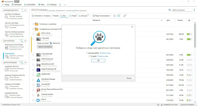 - Удаление программ с автоматической очисткой остатков в реестре и файлах системы.