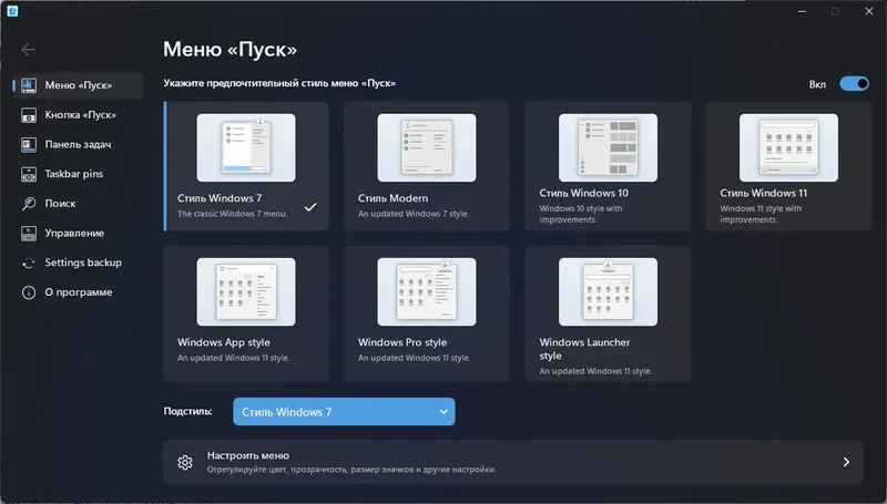 - Поддержка русского языка и наличие множества дополнительных настроек