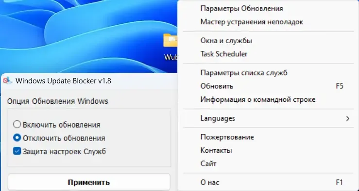 - Позволяет быстро управлять автоматическими обновлениями Windows.