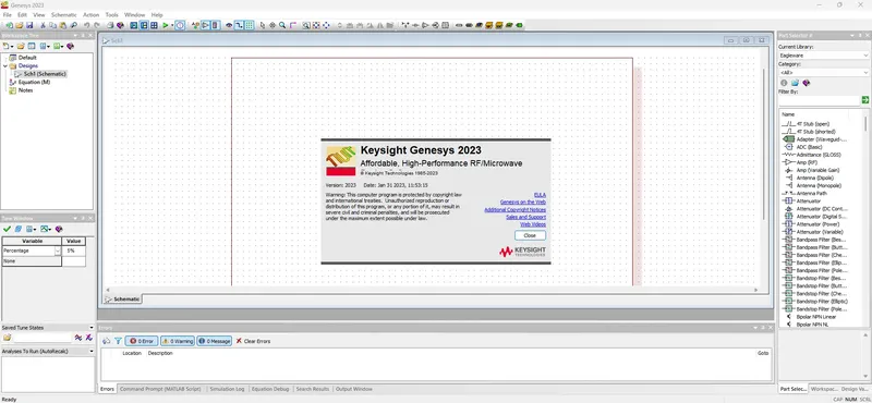 Keysight Genesys — это мощное программное обеспечение для моделирования и проектирования высокочастотных и сверхвысокочастотных устройств. Оно предназначено для инженеров и разработчиков, занимающихся созданием ВЧ и СВЧ плат, фильтров, антенн и цепей согласования. Благодаря интуитивному интерфейсу и широкому функционалу, Genesys позволяет значительно ускорить процесс разработки и снизить затраты на прототипирование, обеспечивая точные автоматизированные схемы синтеза и моделирования.