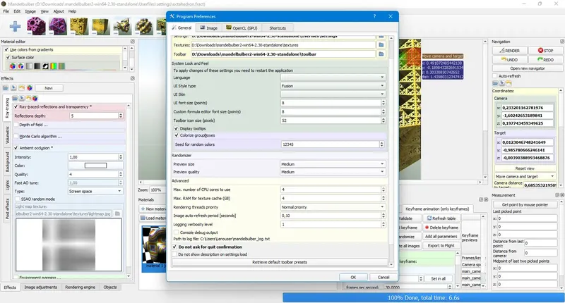 Mandelbulber — это экспериментальное приложение для моделирования и создания трехмерных фракталов. Оно предназначено для профессиональных и любительских художников, исследователей и энтузиастов, интересующихся визуализацией сложных геометрических структур. Программа предлагает богатые возможности для генерации уникальных 3D-фрактальных сцен с высокой точностью и гибкостью настройки, что делает ее незаменимым инструментом в области компьютерной графики и цифрового искусства.