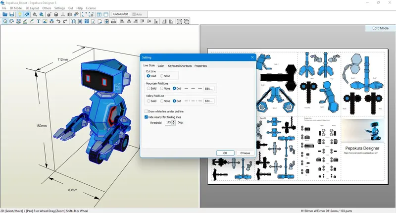 Pepakura Designer — это профессиональный софт для моделирования и создания разверток бумажных моделей. Он предназначен для тех, кто занимается изготовлением объемных фигур из бумаги или картона, а также для дизайнеров и художников, ищущих удобный инструмент для визуализации своих идей. В программе реализованы функции автоматического преобразования трехмерных объектов в плоские выкройки, что значительно ускоряет процесс моделирования и позволяет получить точные развертки для печати. Возможность редактирования и добавления текста, изображений и деталей делает работу более гибкой и креативной. С помощью Pepakura Designer можно создавать сложные модели, объединять 3D и 2D элементы, а также экспортировать готовые развертки в различные форматы для последующей печати и сборки.