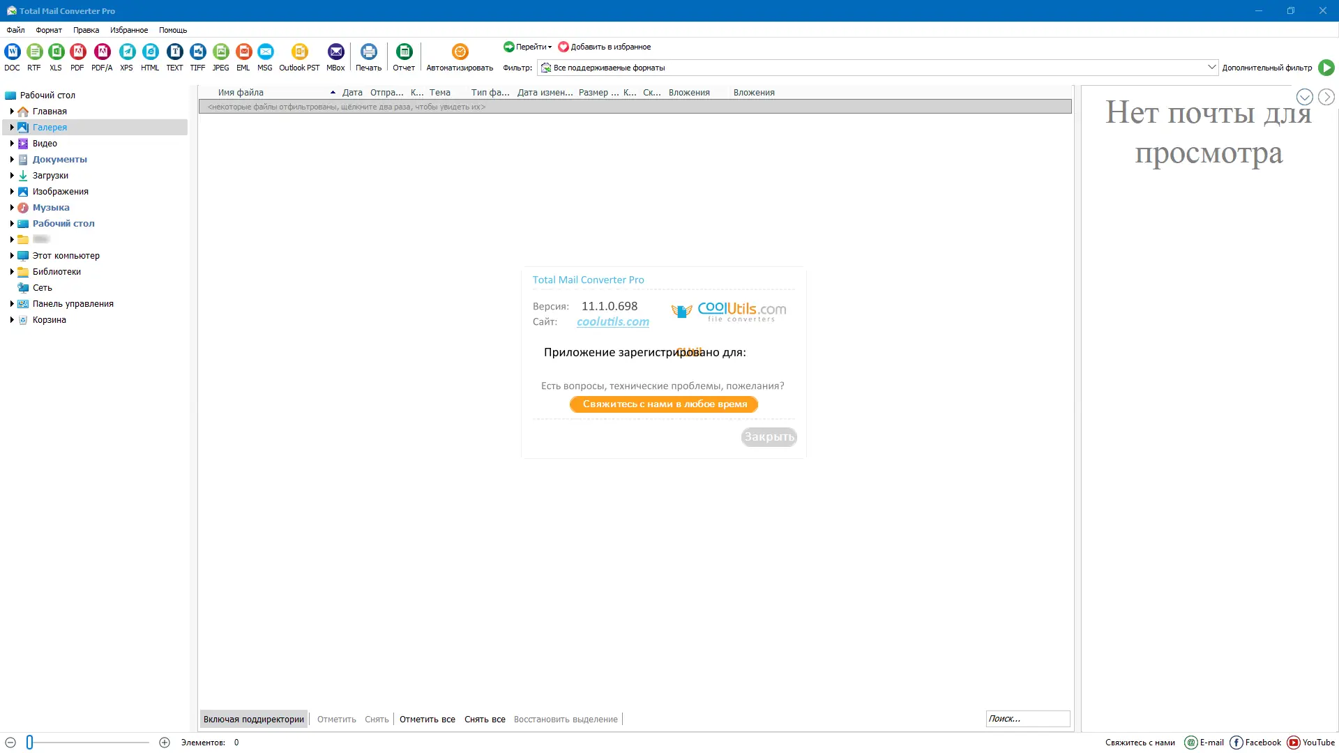 CoolUtils Total Mail Converter — это мощный редактор и конвертер почтовых файлов, который поддерживает работу с популярными почтовыми клиентами, такими как Outlook, The Bat и Mozilla Thunderbird. Он позволяет легко преобразовывать электронные письма в различные форматы документации, что значительно расширяет возможности просмотра и редактирования. Программа идеально подходит для офисных работников, архивистов и специалистов по информационной безопасности, которым важно быстро обрабатывать большие объемы писем и сохранять их в удобных форматах.