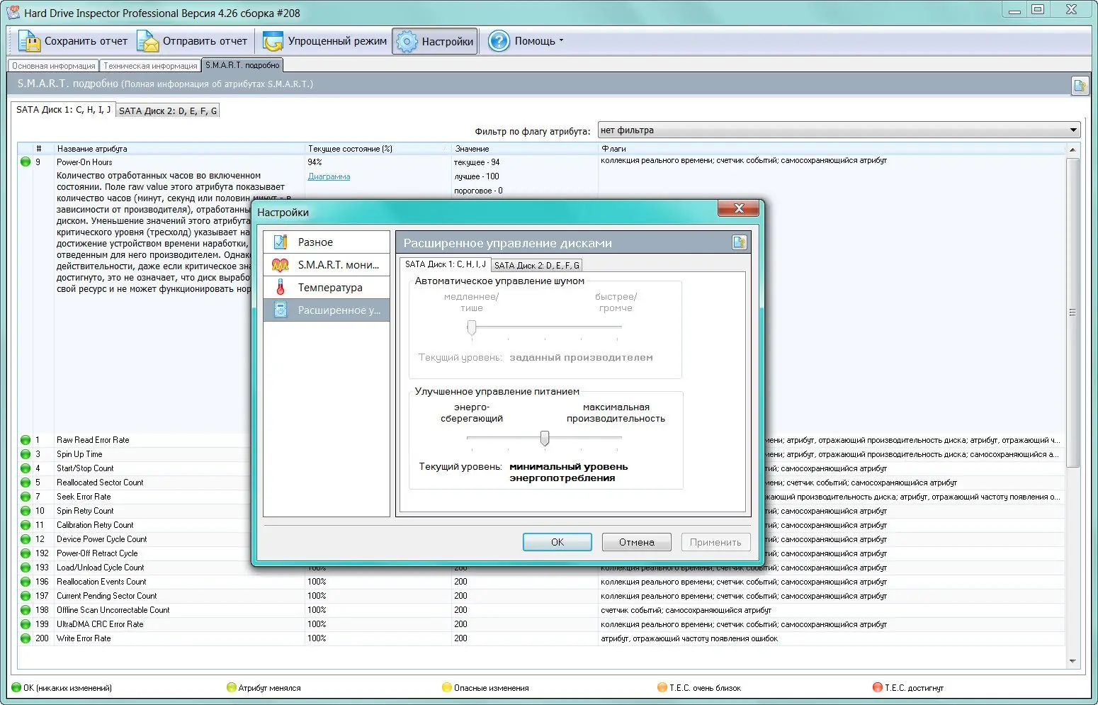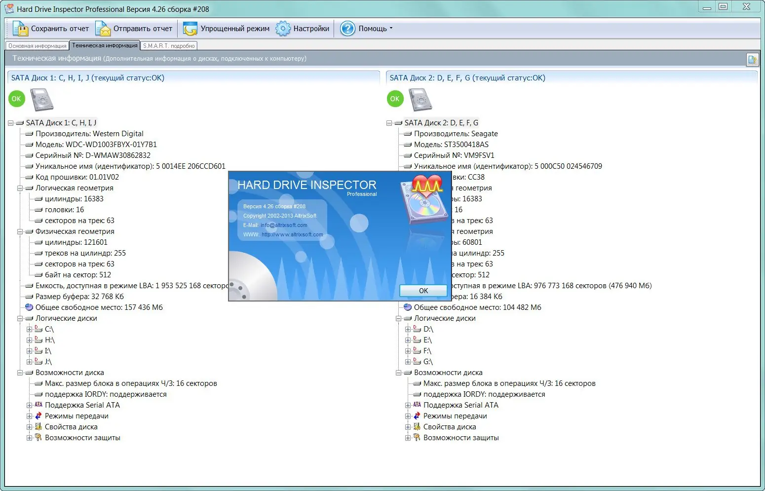 Hard Drive Inspector — это мощное и эффективное программное обеспечение, предназначенное для контроля за состоянием жестких дисков. Его портативная версия сохраняет все функции стандартной редакции, при этом не требует установки и подходит для ноутбуков и стационарных ПК. Программа использует технологию S.M.A.R.T, которая позволяет анализировать параметры диска, такие как температура, время работы, уровень ошибок и другие важные показатели. В случае обнаружения потенциальных угроз надежности, пользователь получает предупреждение, что дает возможность принять меры заранее и избежать потери данных. Надежность и простота использования делают Hard Drive Inspector популярным инструментом среди специалистов и обычных пользователей, заботящихся о сохранности информации.