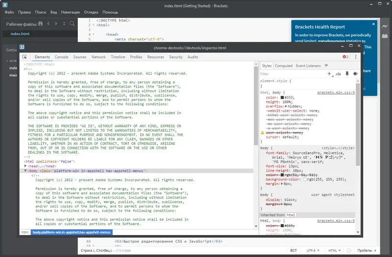 Как пользоваться Brackets