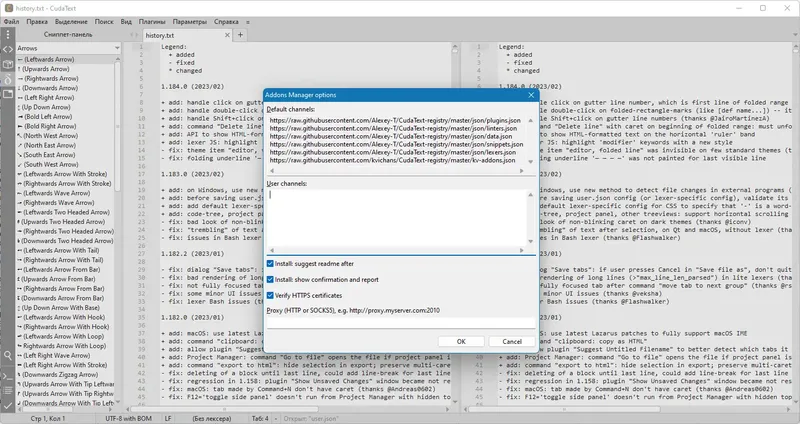 CudaText позволяет эффективно организовать работу над проектами и легко расширять функциональность с помощью плагинов.