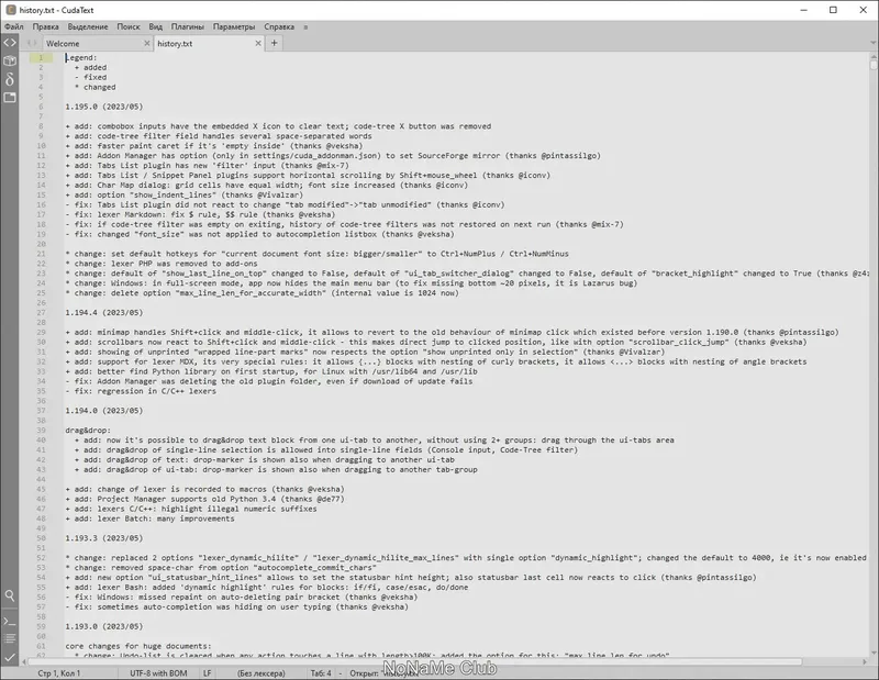 CudaText — это мощный и универсальный мультиплатформенный редактор, специально созданный для профессиональных разработчиков и тех, кто работает с кодом. Программа полностью бесплатна и обладает широкими возможностями для редактирования текста и исходных кодов на различных языках программирования. Благодаря поддержке плагинов и расширений, CudaText легко адаптируется под любые задачи, обеспечивая комфортную работу с проектами любого масштаба и сложности.
