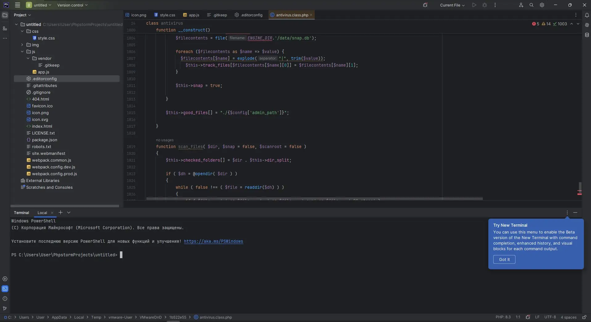 - Интеллектуальный редактор PHP с подсветкой синтаксиса и автодополнением.