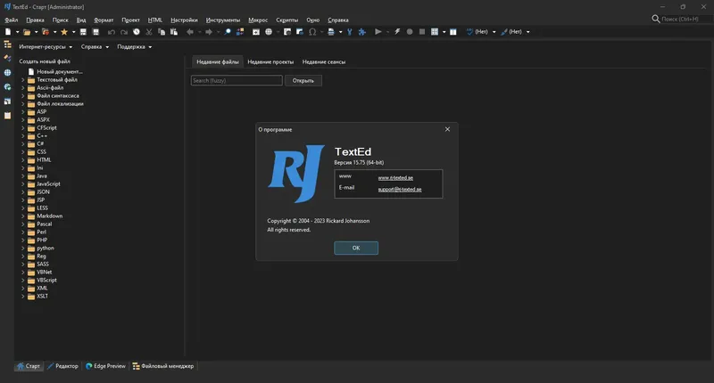 RJ TextEd — это мощный и универсальный текстовый редактор, предназначенный для программистов и веб-разработчиков. Он обладает богатым набором функций, включая подсветку синтаксиса, поддержку различных кодировок и инструменты для работы с HTML, CSS, JavaScript и PHP. Программа идеально подходит для редактирования кода, верстки и создания сайтов, а также обеспечивает удобство и эффективность при работе с текстовыми файлами различного типа.